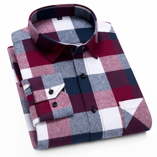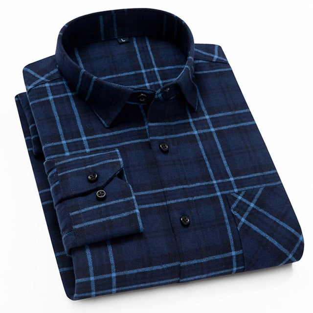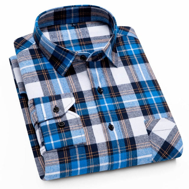 2019 Flannel Plaid Shirt 100% Cotton Hot sale Spring Autumn Casual Long Sleeve Shirt Chemise Homme Camisa Social Masculina