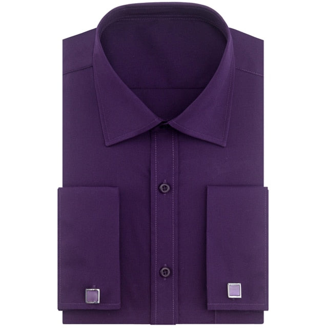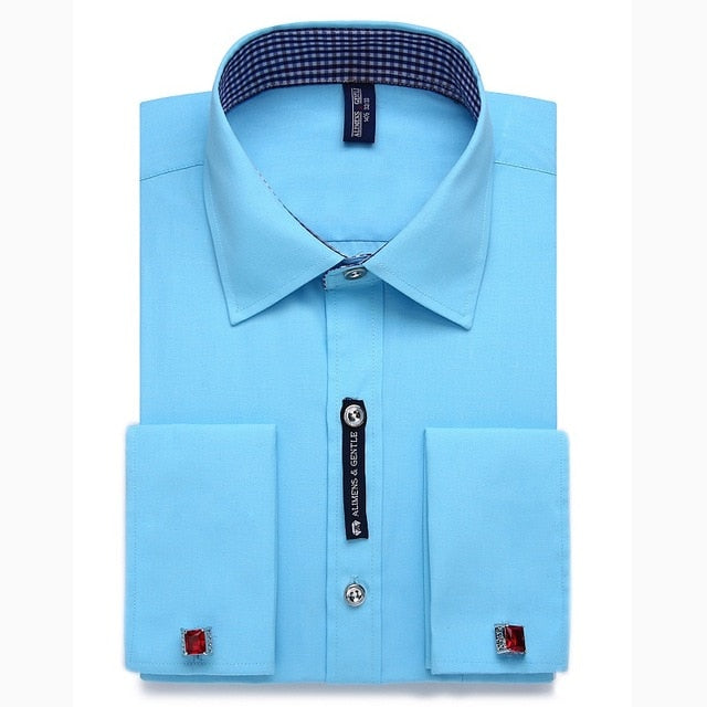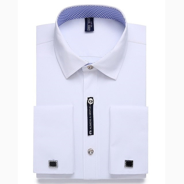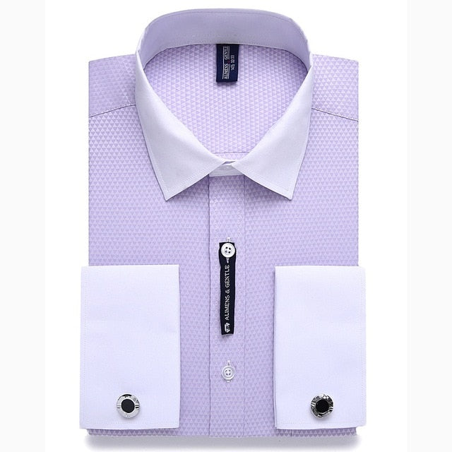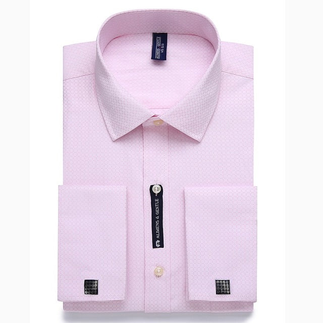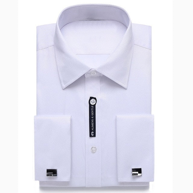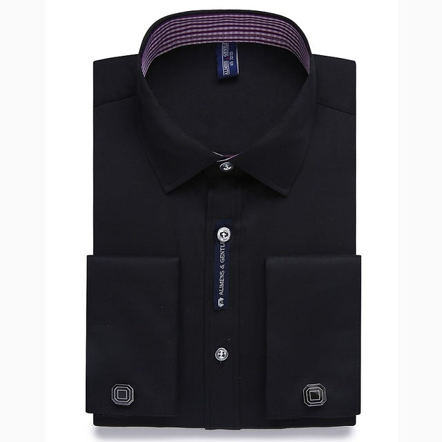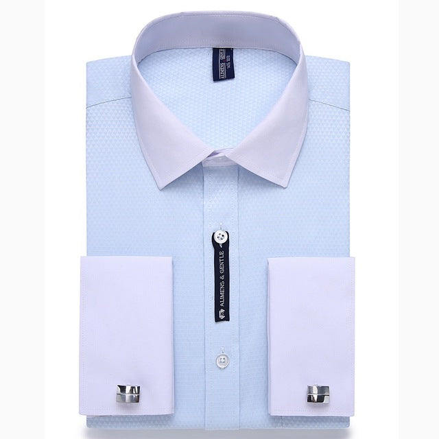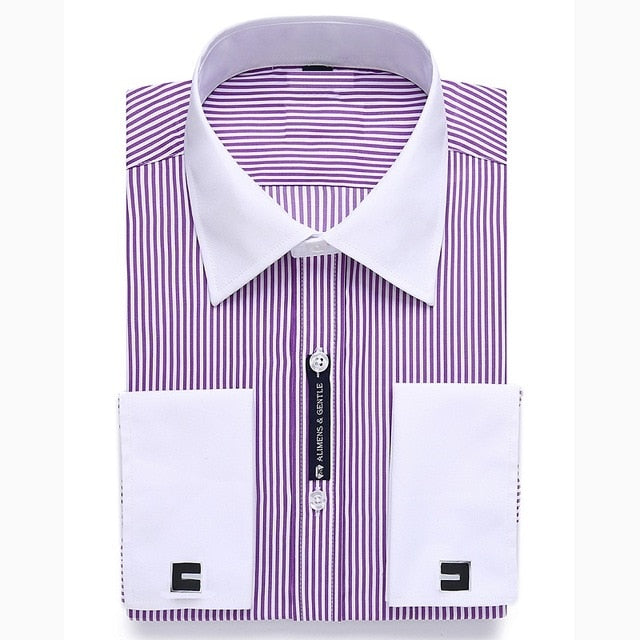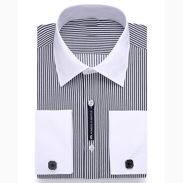 Alimens & Gentle Mens French Cuff Dress Shirt Men Long Sleeve Solid Color Striped Style Cufflink Include 2019 Fashion New